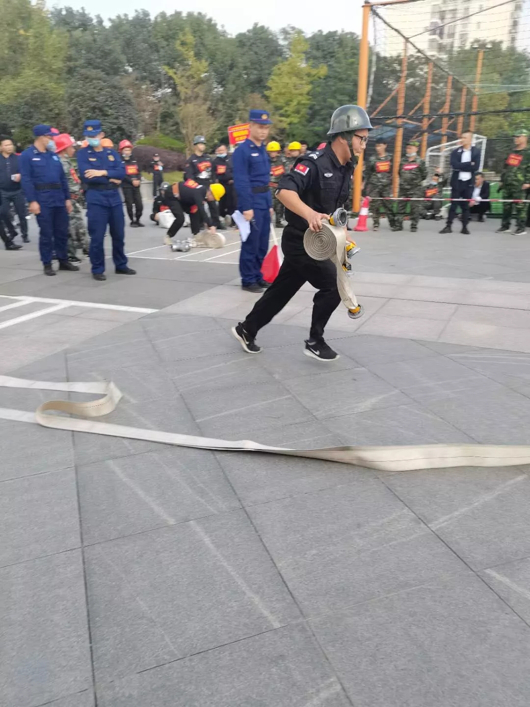 参加比赛的25支队伍都是物业行业中的佼佼者。比赛设置了两盘水带连接、两人五盘水带连接、两人2公斤干粉灭火器灭液化气瓶、五人四盘水带出水操四个闯关环节。